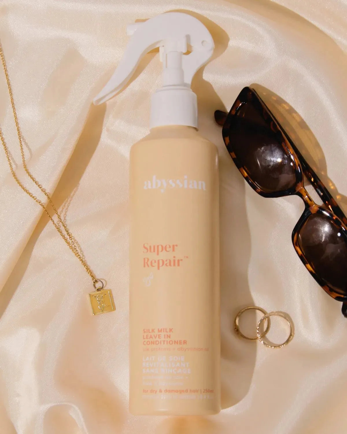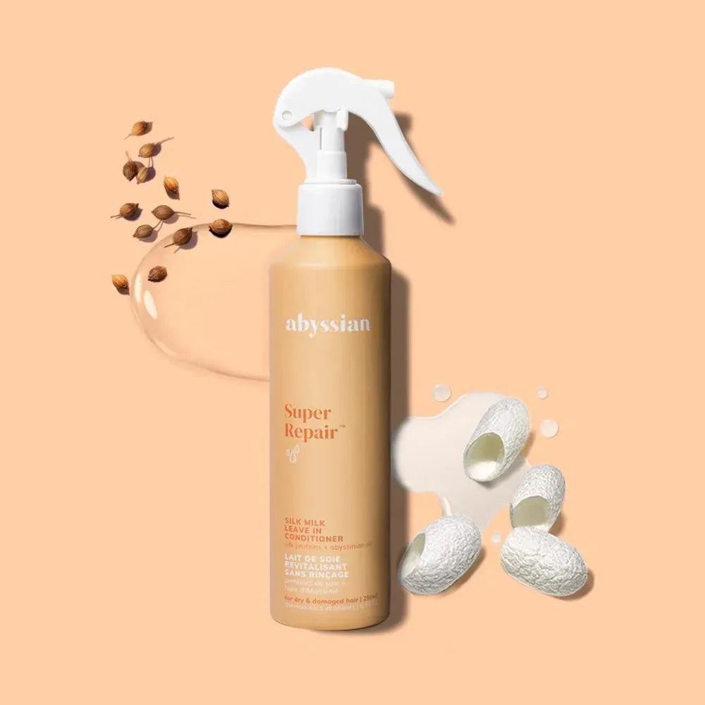 Der Seidenmilch Leave-in Conditioner aus der Super Repair-Serie von Abyssian Haircare ist die perfekte Behandlung für widerspenstiges und krauses Haar. Die einzigartige Bi-Phasen-Formel, angereichert mit Abessinieröl, entwirrt das Haar und verleiht ihm einen natürlichen Glanz. Die Abyssian Seidenmilch kann auf jeder Haarfarbe verwendet werden und ist sulfat-, phosphat- und parabenfrei. Die Vorteile von Abyssian Seidenmilch: