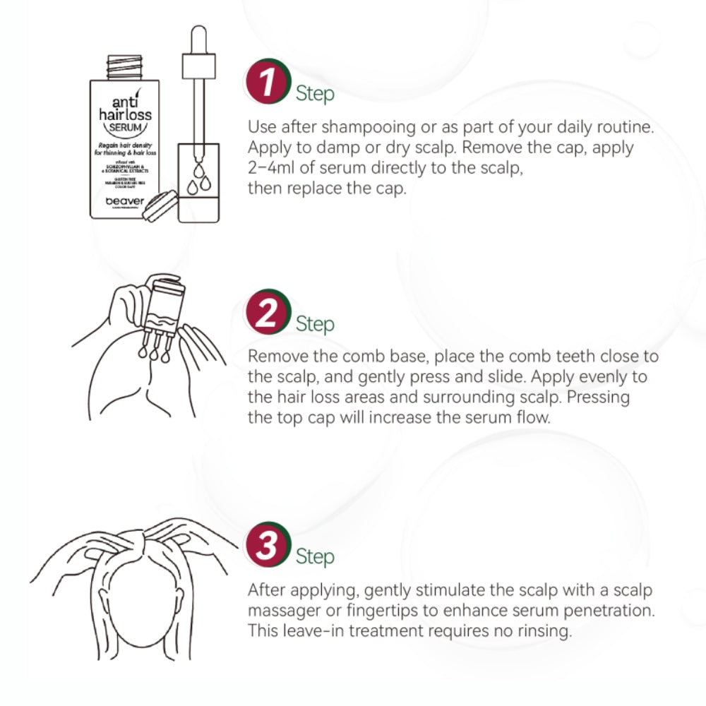 - Massieren: Nach dem Auftragen können Sie das Serum besser aufnehmen, indem Sie die Kopfhaut sanft mit den Fingerspitzen massieren