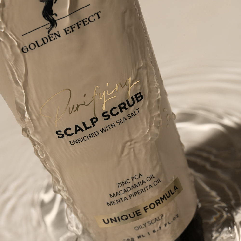 Das Purifying Scalp Scrub von Golden Effect ist ein reinigendes Kopfhautpeeling für fettige Kopfhaut und Kopfhautprobleme wie Schuppen und Hautschuppen. Dieses Peeling reinigt und entgiftet die Kopfhaut gründlich, hilft, die Talgproduktion zu regulieren und bringt das Kopfhautmikrobiom wieder ins Gleichgewicht.