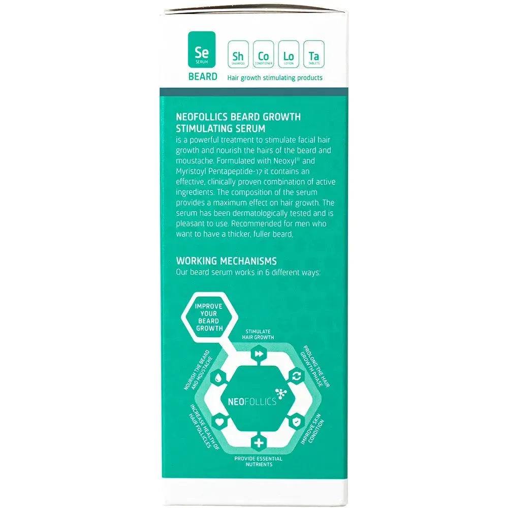 Das Neofollics Haarwuchsstimulierende Bartserum ist eines der fortschrittlichsten und wirkungsvollsten Bartwuchsseren auf dem Markt. Die wissenschaftlich erprobten Inhaltsstoffe beschleunigen das Wachstum des Barthaars und wirken auf nicht aktivierte oder geschwächte Haarfollikel zusätzlich stimulierend.